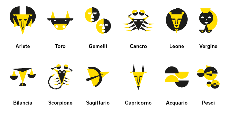Non può esserci un magazine senza il suo oroscopo. Ecco quindi un set completo di segni, rigorosamente ricavati dagli elementi geometrici del logo.