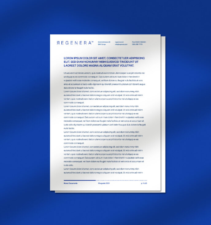 L’obiettivo era trasformare Regenera da progetto di ricerca avanzata a startup strutturata. Era necessario creare un brand e un set di asset di comunicazione in grado di presentare l’iniziativa come una realtà solida, pronta a confrontarsi con il mondo scientifico e con potenziali investitori.